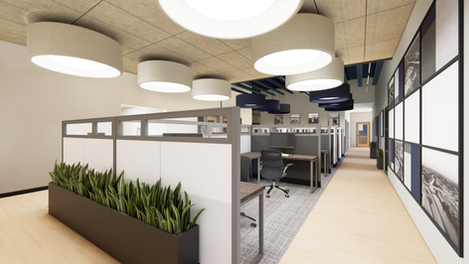 For the new headquarters of a leading brokerage firm in Laredo, the design vision centered on creating a workplace that balances professionalism with hospitality. With multiple offices across Texas, the firm wanted this location to stand as both a functional hub and a welcoming destination for clients and colleagues alike. The conference room became the focal point, designed as a signature space where the firm could host meetings and important gatherings with ease and sophistication. Beyond formal settings, entertaining was also prioritized through thoughtful amenities such as a ping pong table and lounge-style seating, fostering connection and camaraderie among staff and guests. The material palette strikes a deliberate balance between timelessness and brand identity. Classic finishes such as wood, metal, blackened steel, and terrazzo were combined with the company’s branding hues of grey and blue, resulting in an environment that is both refined and unmistakably tied to the firm’s mission and identity.